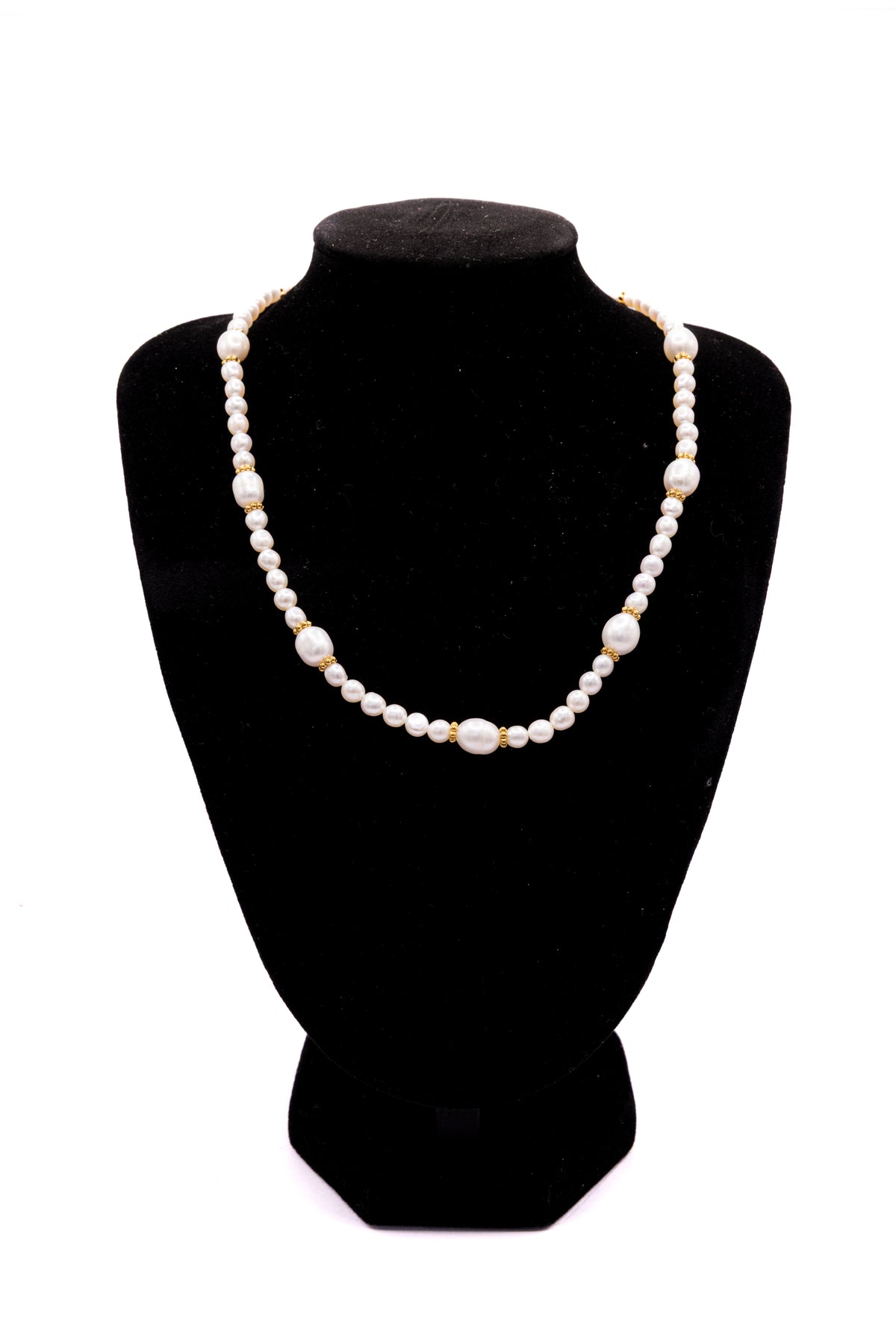Le collier Perlina associe la douceur irisée de la perle d'eau douce à la chaleur du doré, créant un équilibre parfait entre pureté et sophistication.